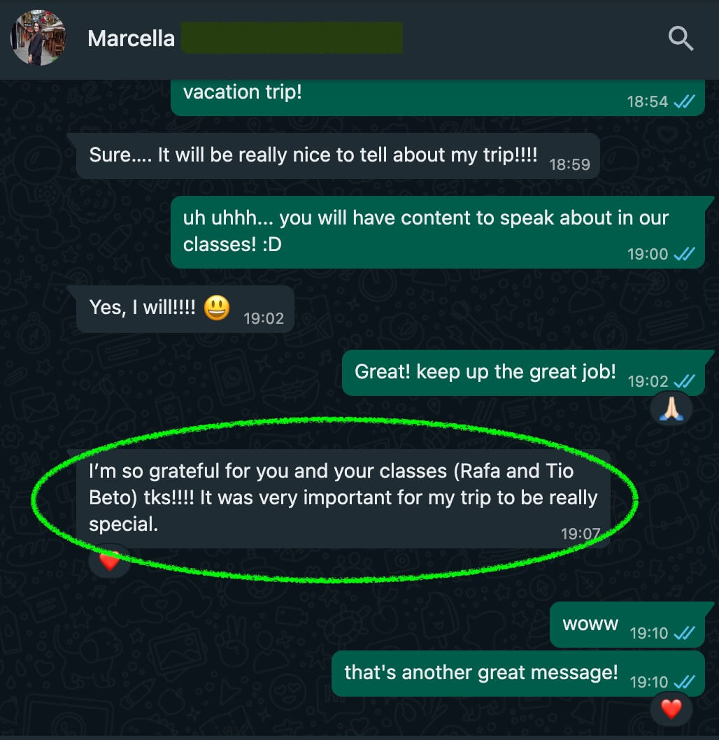 Qualquer tipo de aprendizado requer seriedade e dedicação. No método, o esforço na medida certa garante a evolução no idioma. Não existem milagres!